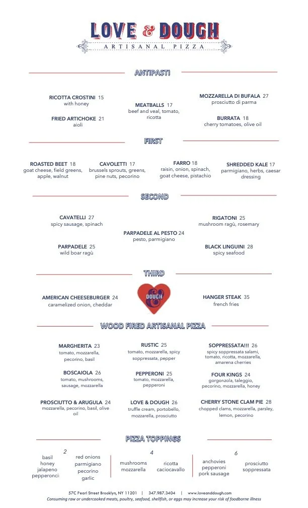 Almost adjacent to the Manhattan Bridge in Brooklyn, Love & Dough is a charming spot to experience specialties from one of Italy's greatest cooking regions- Campania.